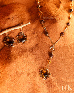 Juego de aretes y gargantilla con incrustación de topacio en tono café.