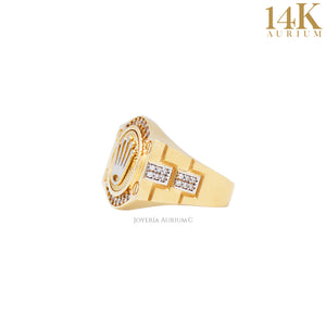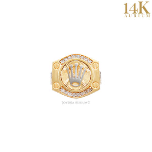 Anillo para caballero tipo rolex con incrustación de zirconias blancas.