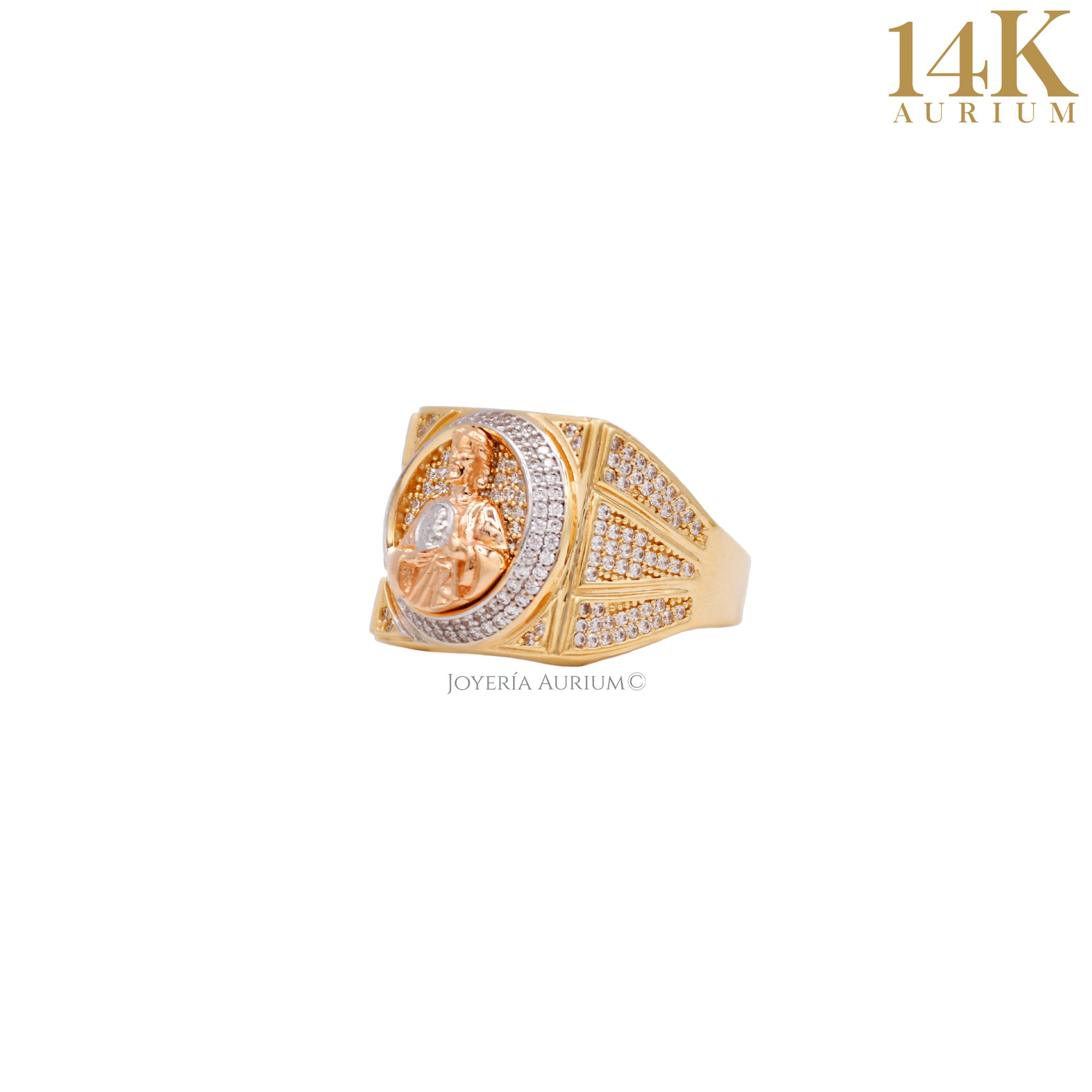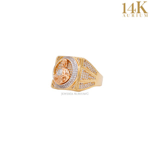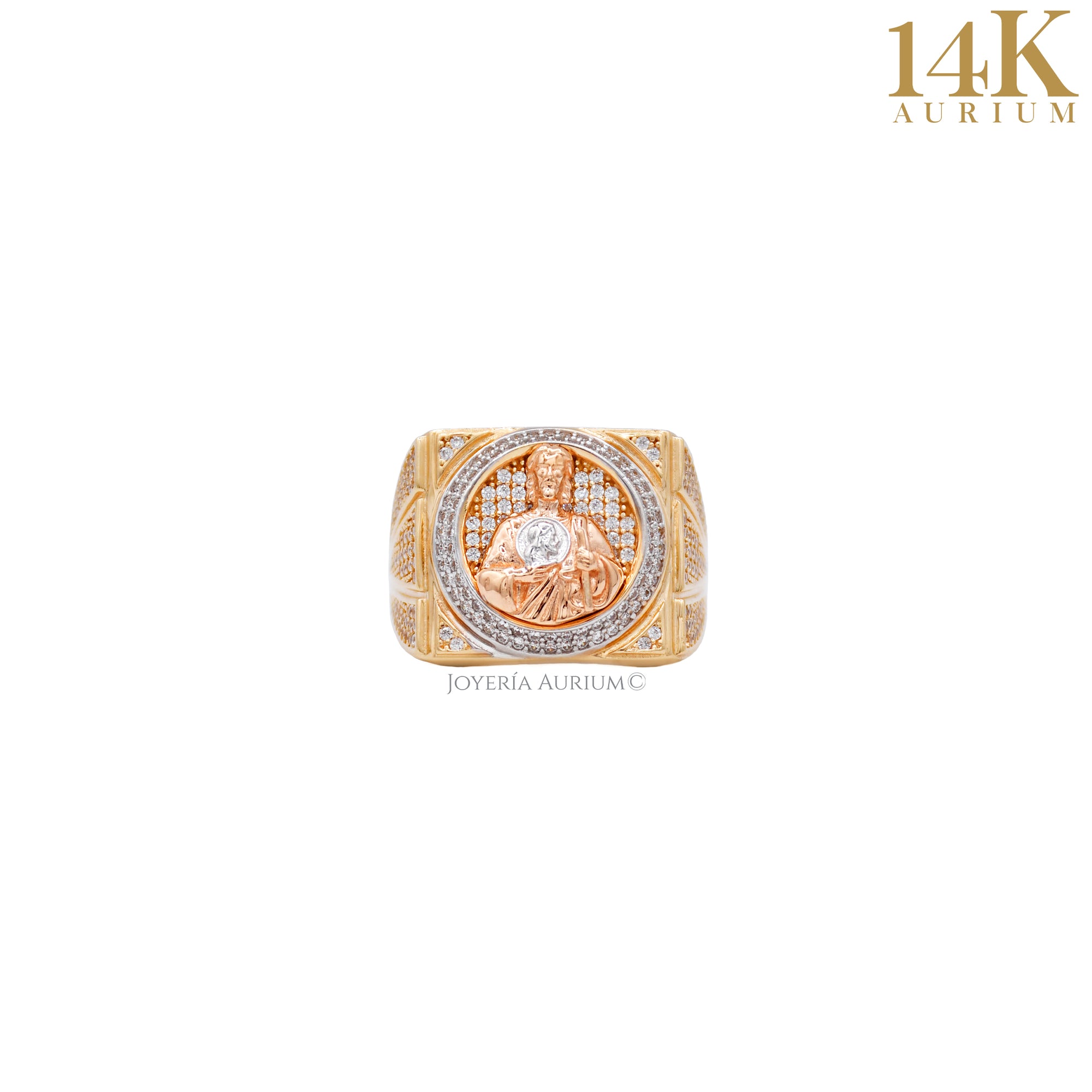 Anillo para caballero con la figura de San Judas e incrustación de zirconias blancas.