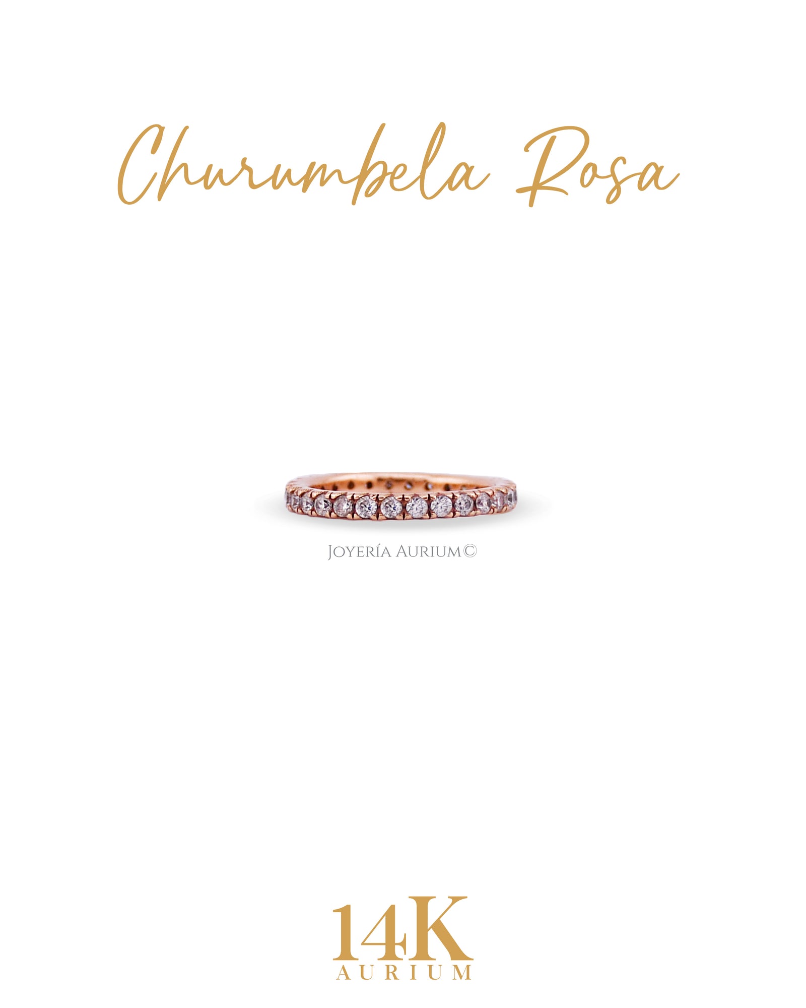 Anillo para dama churumbela rosa e incrustación de zirconias.