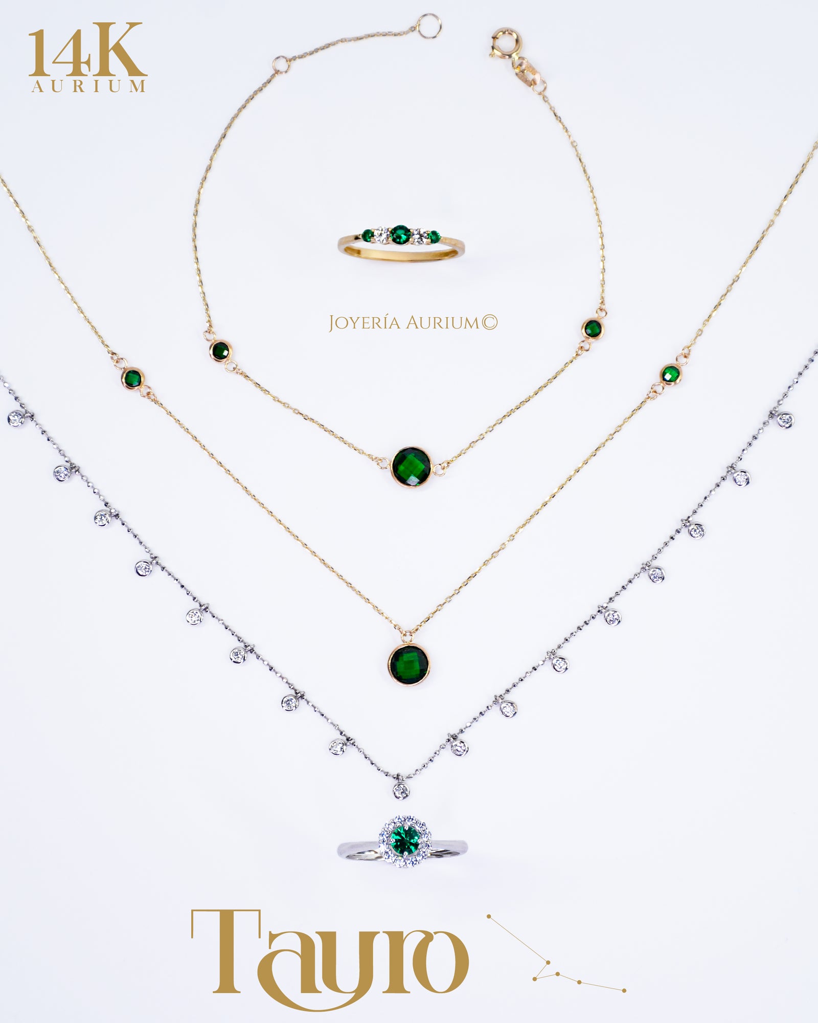 Gargantilla con incrustación de zirconias en verde esmeralda.