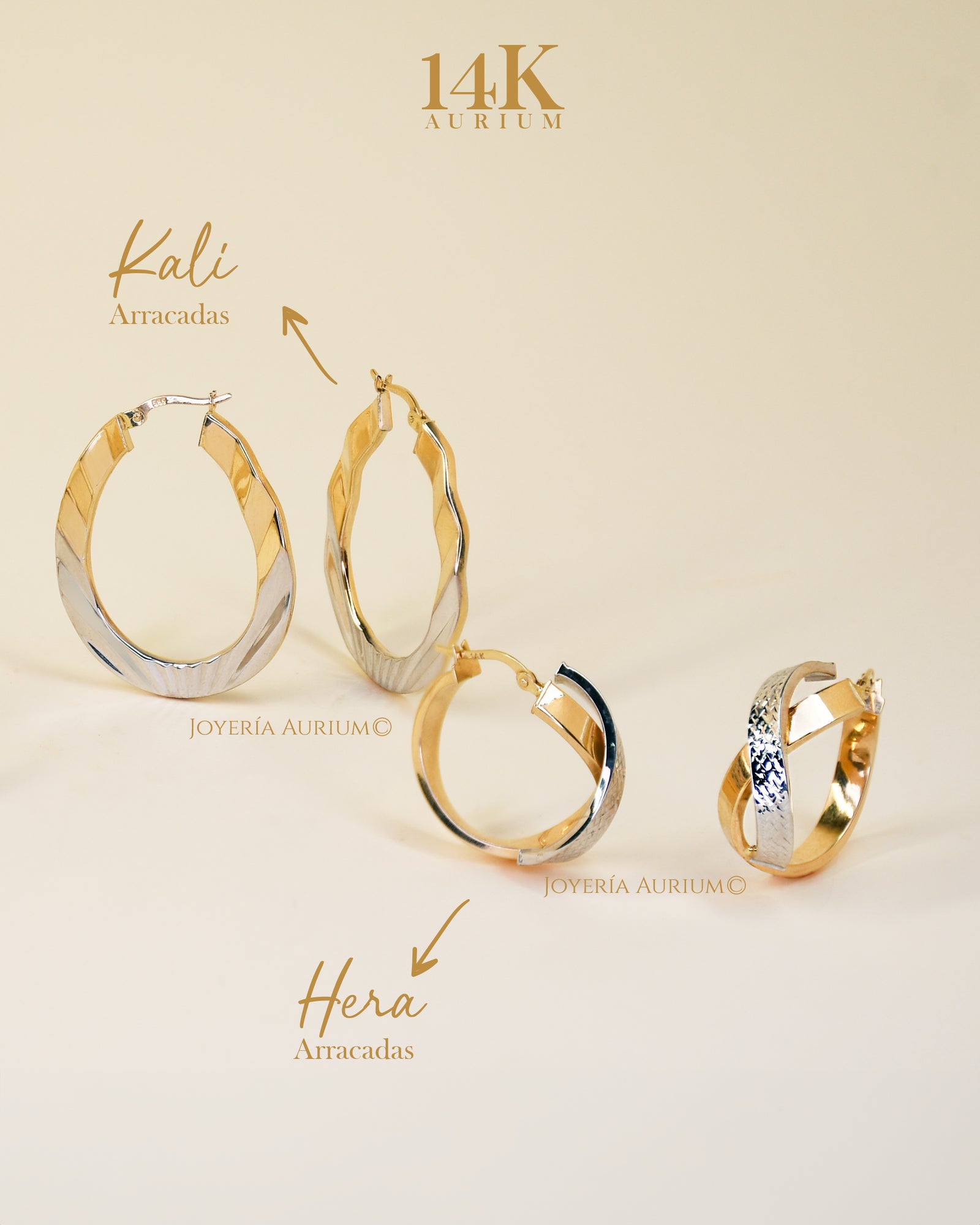 Kali: Arracadas onduladas en dos oros.