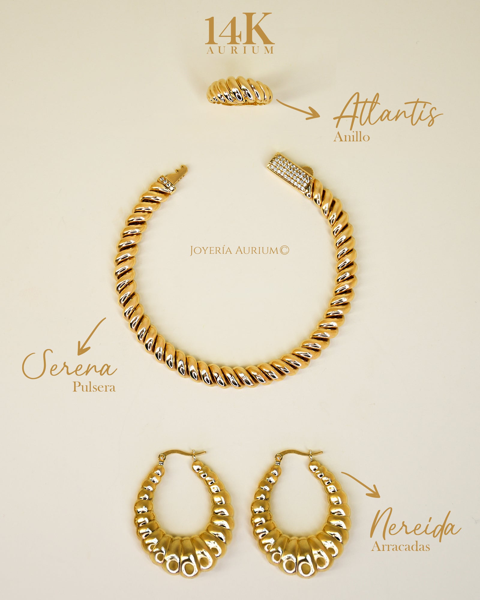 Nereida: Arracadas doradas en oro amarillo.