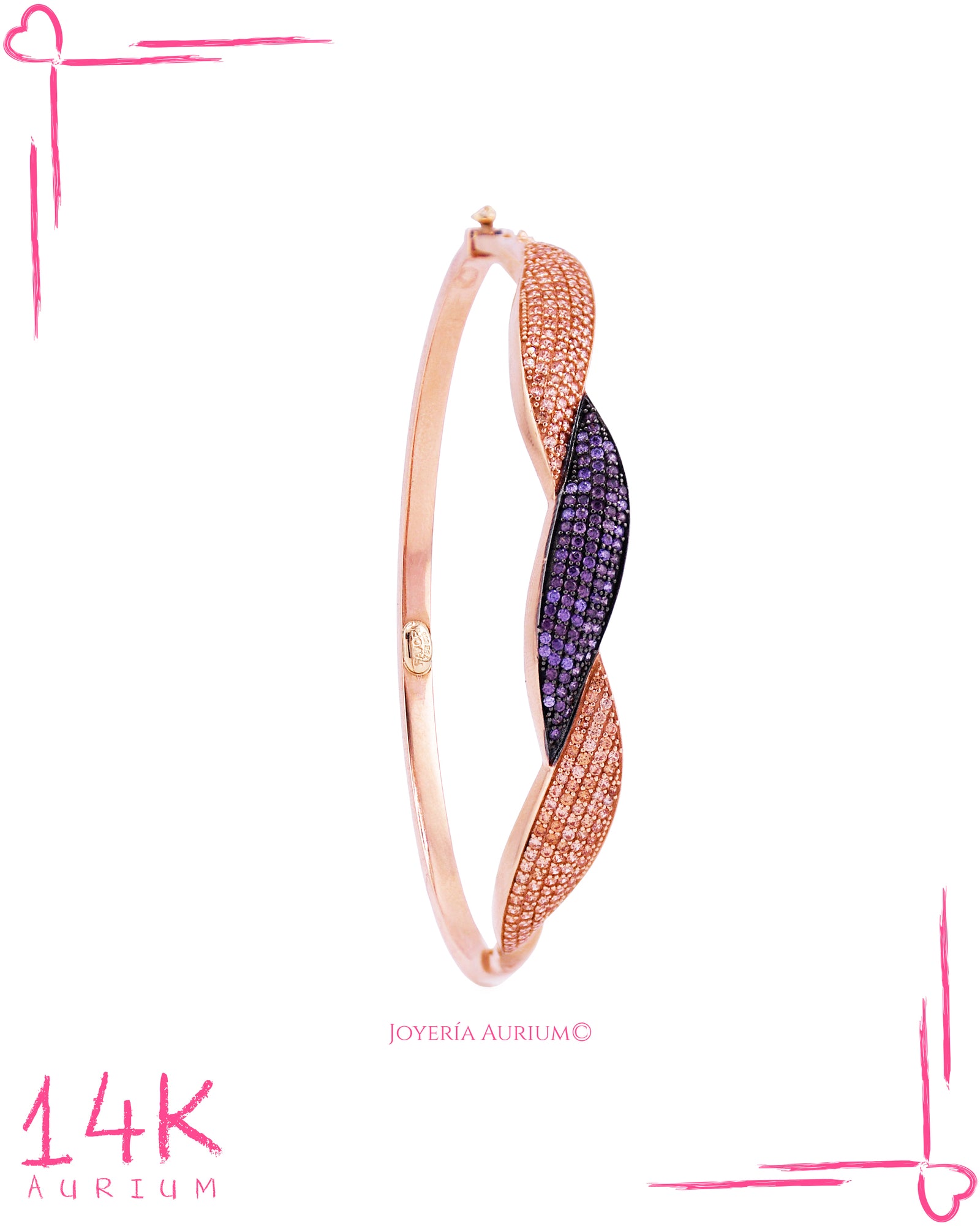 Aro Georgie en oro rosa con zirconias blancas y moradas.