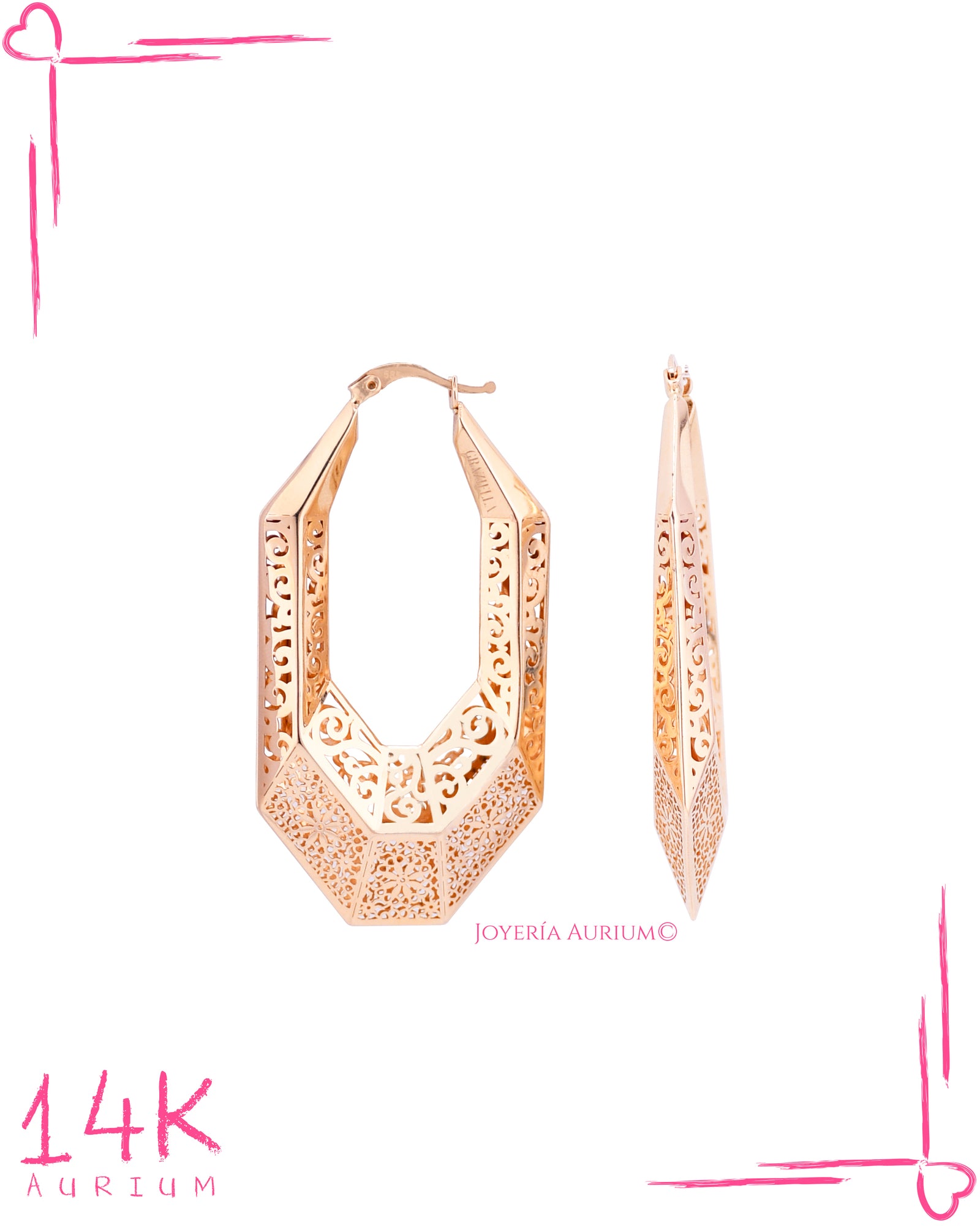 Arracadas con diseño calado en oro amarillo.