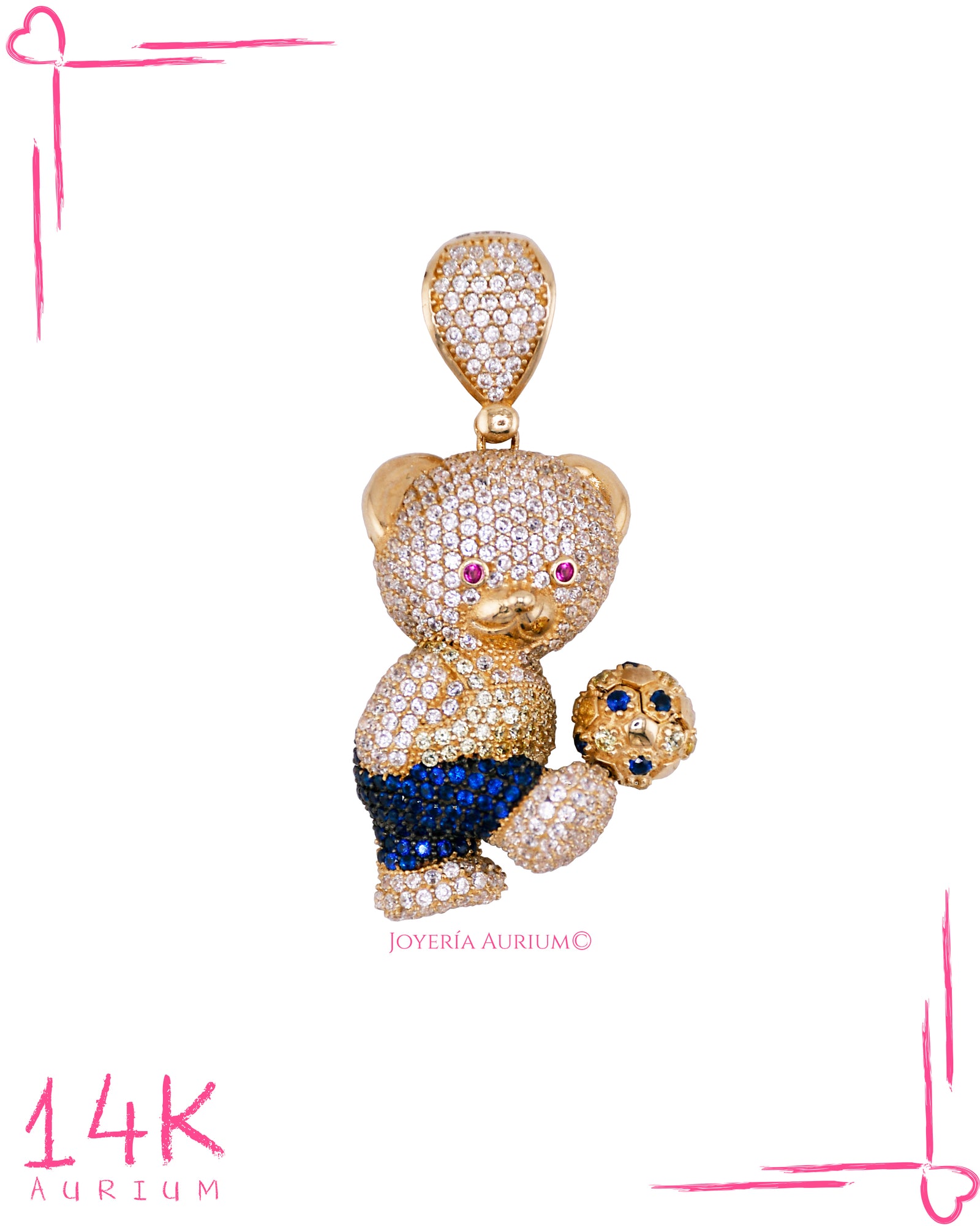 Dije de oso y balón de futbol con incrustación de zirconias.