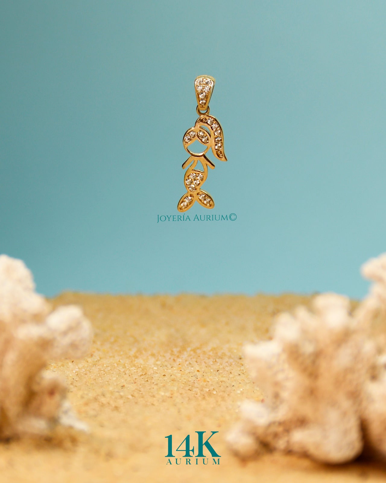 Dije de sirena con incrustación de zirconias.