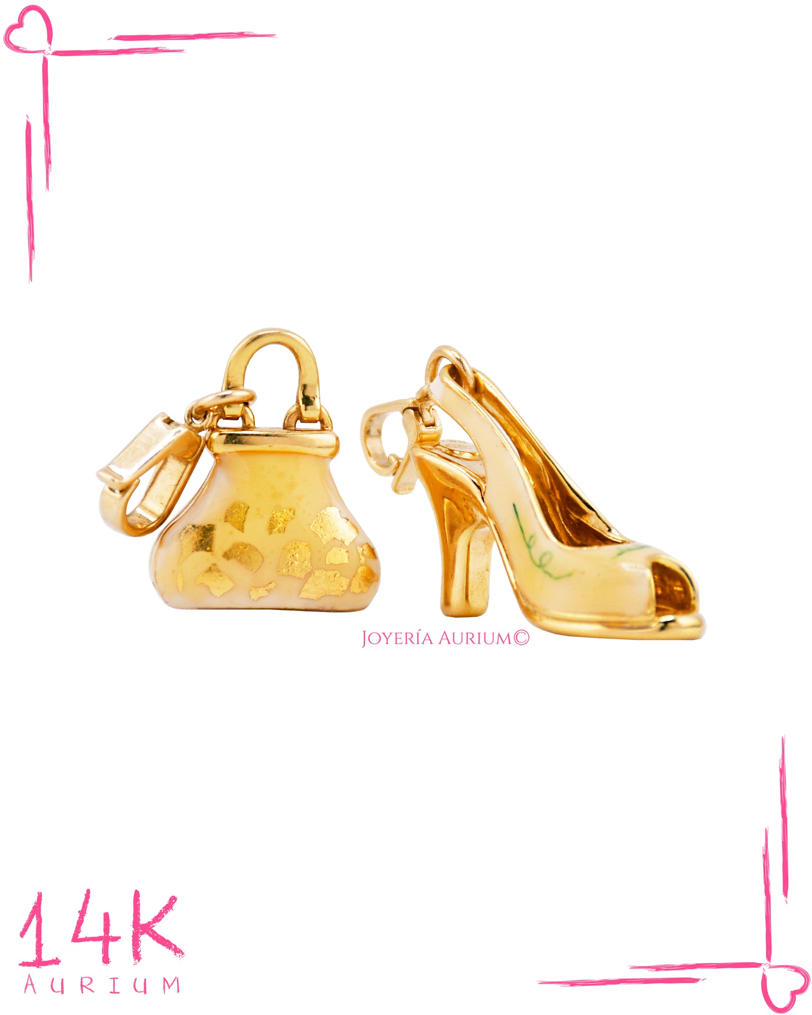 Dije en forma de bolsa pintados a mano marca Rosato.